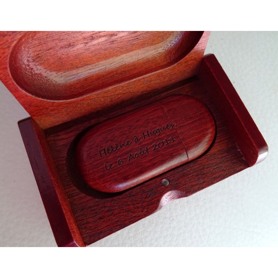 En unik presentidé som du kan göra personlig! Ett vackert USB-minne i trä som kan graveras med ett förnamn eller ett sött ord, med en matchande låda i massivt trä som också kan graveras med ett meddelande. Ett praktiskt föremål (för att dela foton, filmer eller filer) som presenteras vackert i sin grova träväska, elegant på skrivbordet och väl skyddad.
