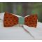Träbågsbinda dekorerad med 2 valfria mini-designs som graverats på toppen, tillverkad av naturligt eller betsat körsbärsträ (ursprung Frankrike, från ett sågverk i Ardèche). För en bröllopsbågsbinda kan var och en av de 2 designerna föreställa bruden och brudgummen (som på bilden: sysymbol och en rugbyboll) eller för fars dag kan designerna föreställa 2 av faderns passioner.