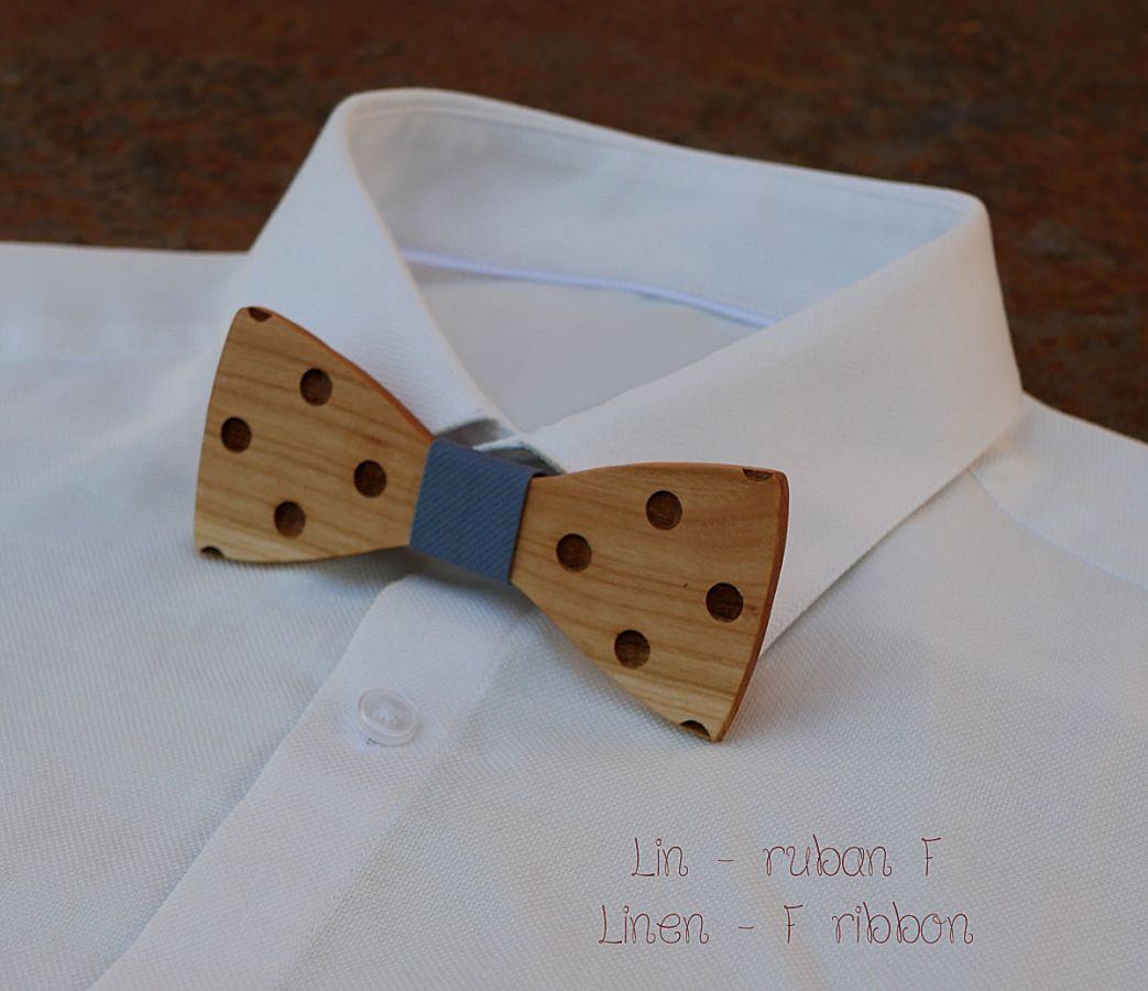 Blips med polkapoäng i färgat körsbärsträ (ursprung Frankrike, från ett sågverk i Ardèche), en naturligt elegant accessoar för män och en originell gåva till en vän, en make, en pappa, ett bröllopsvittne.... Denna blips dekorerad med stora polkapoäng graverade på framsidan kan personaliseras på baksidan genom lasergravyr med ett namn, ett litet citat, datumet för händelsen (t.ex. datum för bröllopet), rollen i bröllopet (brudgummen, brudens far)