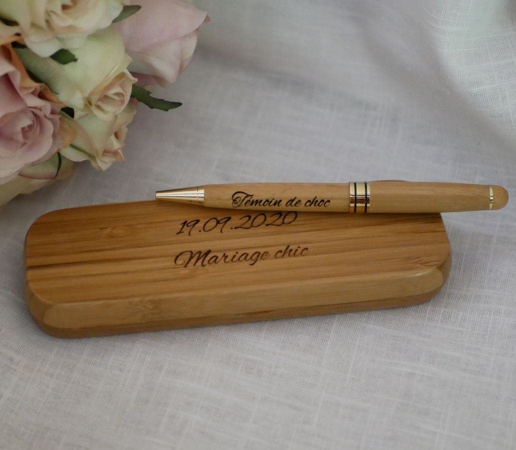 Un joli cadeau personnalisé pour les signatures du jour J, pour dire merci à une maitresse, un maitre, un témoin, un parrain ou gravé de mots d'amour...